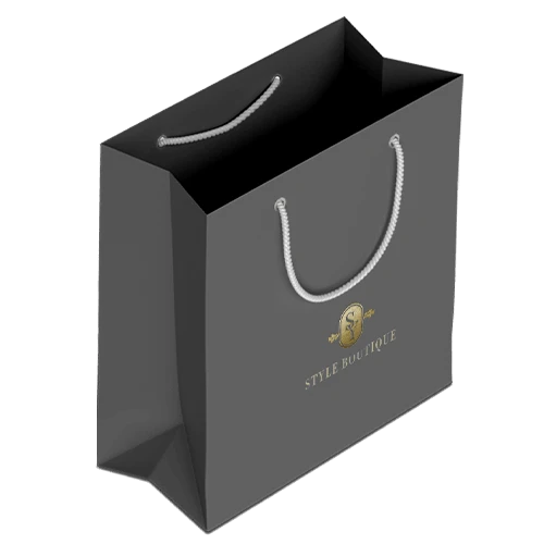 Q: What are paper bags?A: Paper bags, generally known as paper shopping bags, paper carry bags, and paper gift bags are made of various paper & card stocks. These bags are easy to store & handle, eco-friendly, and cost-effective. Q: What paper and size options are available for branded paper bags?A: We can produce paper bags using natural brown kraft paper, plain white textured paper, and plain white coated paper. Likewise, you can also choose form card stocks such as natural brown kraft card and plain white card. Multiple weight and thickness options are available for both paper and card stocks. Q: What printing options are available and can I print on the inside of the paper bags?A: You can choose to have spot colors printed as well as full color printing on your paper bags. You can also choose to have printing on the inside. Please contact our support team for available options based on your selection of paper or card stock. Q: Can you do foil stamping on custom paper bags?A: Yes, we can do foil stamping on our entire range of stocks used for paper bags. In addition to foiling, we can also do spot UV coating and soft touch lamination on certain stocks. Our support team can guide you through these options. Q: What is a gusset and a baseboard?A: A gusset is a fold at the bottom of the bag that allows the bag to expand in order to provide more room. A baseboard is a flat card that is added to the bag’s bottom in order to provide additional support. Q: What measurements do you need for paper bags?A: Similar to product boxes, you can provide us the required height, width, and depth (gusset) of a fully expanded paper bag. Q: Can shopping bags be easily recycled in United States?A: Yes, shopping bags can be easily recycled in the United States, but applicable recycling regulations vary by state and municipality. These bags are typically made from paper, which is an easily recyclable material. Q: Are any eco-friendly gift bag options available in the United States?A: Many eco-friendly shopping bags options are available in the US, including bags made from virgin pulp, recycled paper materials, or other sustainable sources like bamboo and organic cotton. Paper bags are both compostable and reusable. Q: What kind of paper bags are typically used for giving gifts in the United States?A: A diverse range of paper bags are used for gift-giving, including sturdy kraft bags, glossy or laminated options that give a premium feel, themed and decorative designs for special occasions, and smaller gift bags for compact gifts. Q: What are the most common handle types for shopping bags?A: